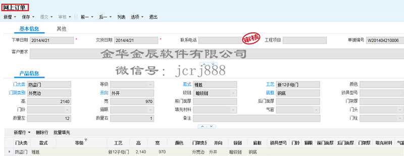 首頁(yè) >產(chǎn)品中心金辰門(mén)業(yè)ERP專(zhuān)版