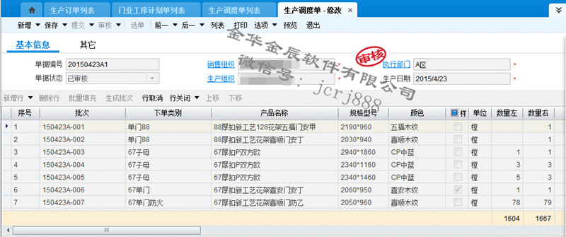 4、 生產(chǎn)調(diào)度,系統(tǒng)下單,下單尺寸自動(dòng)分解、采購(gòu)物料自動(dòng)分解。
