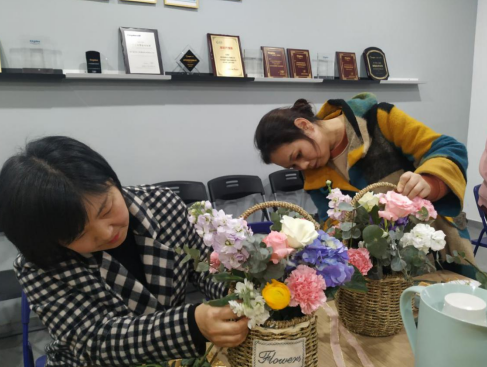 每一位女神都沉浸在自己的花藝世界,她們的認(rèn)真勁兒一點也不輸給專業(yè)花藝師?;顒有路f而有趣,現(xiàn)場的氛圍融洽而歡樂。在一片花海中,參加活動的每位女神臉上都洋溢著滿足和喜悅的笑容,沉浸在其樂融融的氣氛里。