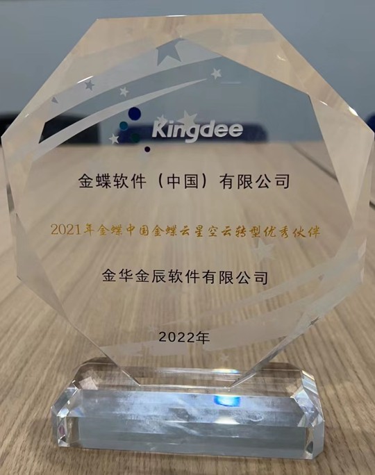 金華金辰軟件有限公司榮獲金蝶集團(tuán)“2021年金蝶中國(guó)云轉(zhuǎn)型優(yōu)秀伙伴”的榮譽(yù)!