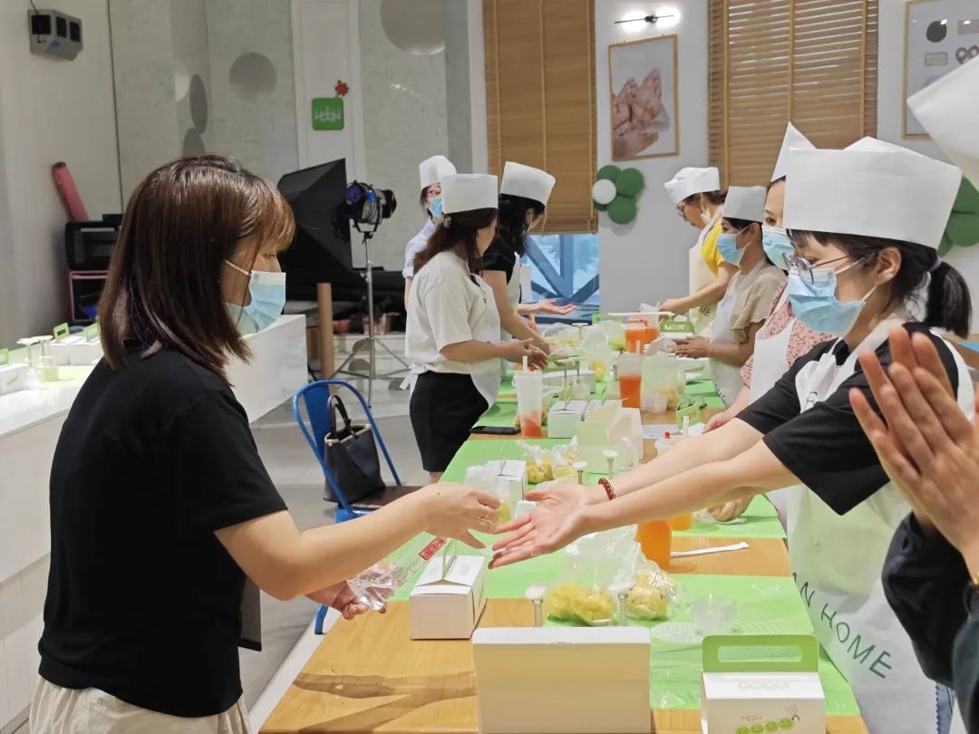 過程中,大家熱情高漲,很快就做出一個個精美好看的綠豆糕?;顒咏Y(jié)束,將包裝好的綠豆糕帶給家人朋友分享。
