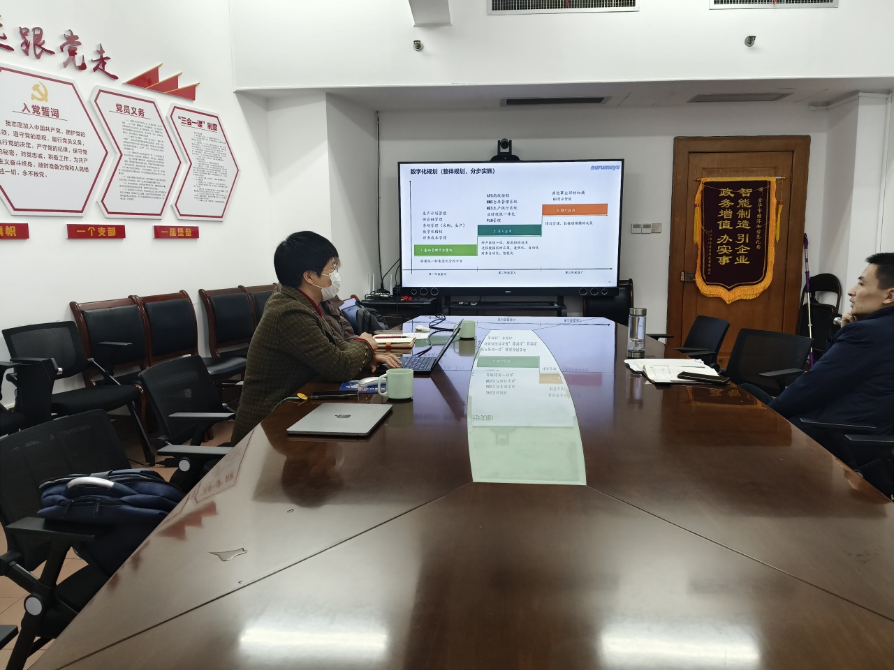 和金華市經(jīng)信局?jǐn)?shù)字經(jīng)濟(jì)處施處長做了匯報和交流,施處對金華金辰軟件有限公司目前取得的成績給予了認(rèn)